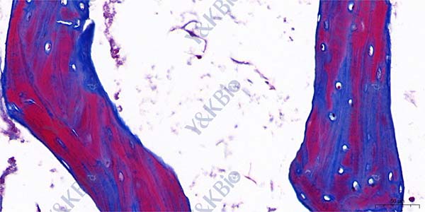 骨中胶原主要是I型胶原,成熟骨重庆Masson染色胶原着鲜红色,在新生骨走向成熟过程中表现为红-蓝相间现象,表明骨组织中胶原的成熟程度影响Masson的染色反应,可以用Masson染色来评价骨质的成熟程度,新生骨质红染少,成熟骨内红染多,即骨质越成熟,红染越多。同样也可以用此染色观察骨细胞和成骨细胞的活动状况,在细胞周围出现的蓝染胶原系新生部分,细胞周围蓝染区域的大小代表细胞的新近活动程度。