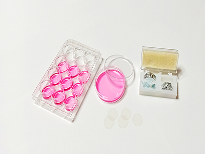 2.将盖玻片剪裁成合适的大小,以备置于6孔板、12孔板或24孔板;裁剪时用小沙轮轻划一下,稍用力掰开。如接种大皿,请不要将盖玻片切开,直接清洁后放入培养皿中,待染色时再切开,这样既保证了细胞均一性,又可同时做多个指标的染色。