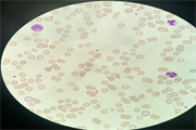 取新鲜血液(若用抗凝管收集的血液,放置最好不要超过24h,否则血液中的白细胞的数量以及种类会明显减少),选用重庆粘附载玻片,用移液枪吸取10ul的血液,滴加在玻片的一侧(一般都是磨砂这边),再取一片干净的载玻片(也可选用盖玻片,依据个人手的力道习惯选择)的,以30°-40°角,用其窄面靠近血液,会发现血液会沿着接触边缘向两边晕开,当两边都要到达边缘时,轻轻的稳健且匀速的向另一侧涂片,至距离另一侧2cm左右的距离,快速果断的拿走载玻片,可见图片首尾分明,厚薄均匀。一般情况下,涂抹速度力道适中的话,取走玻片时载玻片上的血几乎无残留,且涂抹出的血涂片无明显细胞破碎,变形,在显微镜下可观察到其细胞是单个紧密的排列,整体比较均匀。将涂好的血涂片自然晾干,放入切片盒内于4℃冰箱保存,要做时拿出可直接染色。切记涂片手法很重要,不可涂的过薄,白细胞数量会很少或者都残留在了尾端,也不可涂得过厚,细胞区分不清晰,部分区域血膜稍厚没关系,只要大部分视野都挺好的就行。
