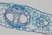 染色结果判读:木质化的细胞壁及核呈红色,薄壁细胞、细胞质呈绿色。