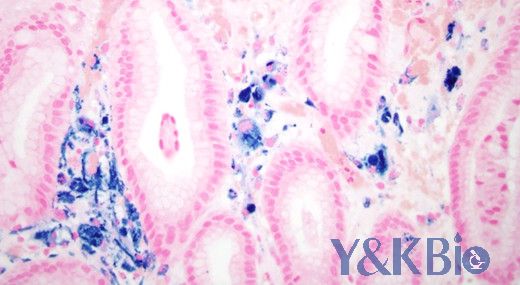 陕西依科生物技术服务有限公司一、普鲁士蓝详情介绍:含铁血黄素(Hemosiderin)是一种血红蛋白源性色素,为金黄色或棕黄色颗粒,因其含铁、金黄色,故称为含铁血黄素。当红细胞被巨噬细胞吞噬后,在溶酶体酶的作用下,血红蛋白被分解为不含铁的橙色血质和含铁的含铁血黄素。Perls 普鲁士蓝反应(Prussian blue reaction)又称为含铁血黄素染色,即经过亚铁和稀酸处理后可以产生蓝色,常见于吞噬细胞内会间质内,主要显示三价铁盐。Perls 普鲁士蓝是非常经典的组织化学反应,是显示组织内三价铁的一种敏感、传统优良的方法,其染色原理为:亚铁qing hua jia溶液使三价铁离子从蛋白质中被稀盐酸分离出来,三价铁与亚铁反应,生成一种不溶解的蓝色化合物即三价铁的亚铁物普鲁士蓝,所以该反应被称为重庆普鲁士蓝染色反应。三价铁的是一种很稳定的化合物,在反应后可用红色染色剂进行复染,如核固红、伊红、中性红等。