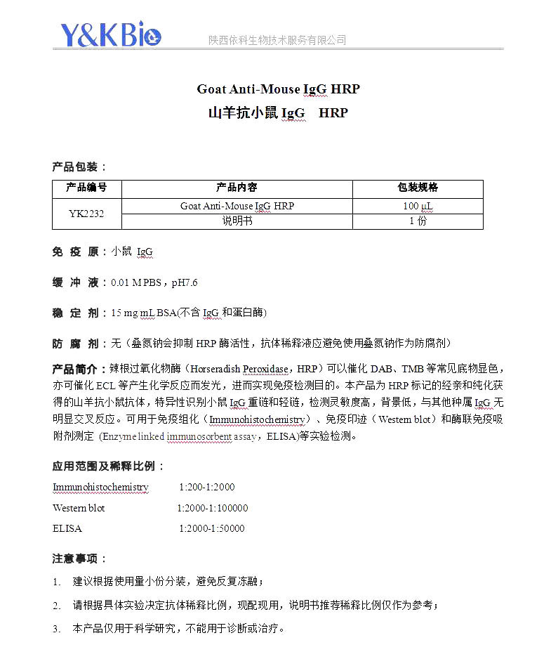 重庆Goat Anti-Mouse IgG HRP 山羊抗小鼠IgG (H+L) HRP